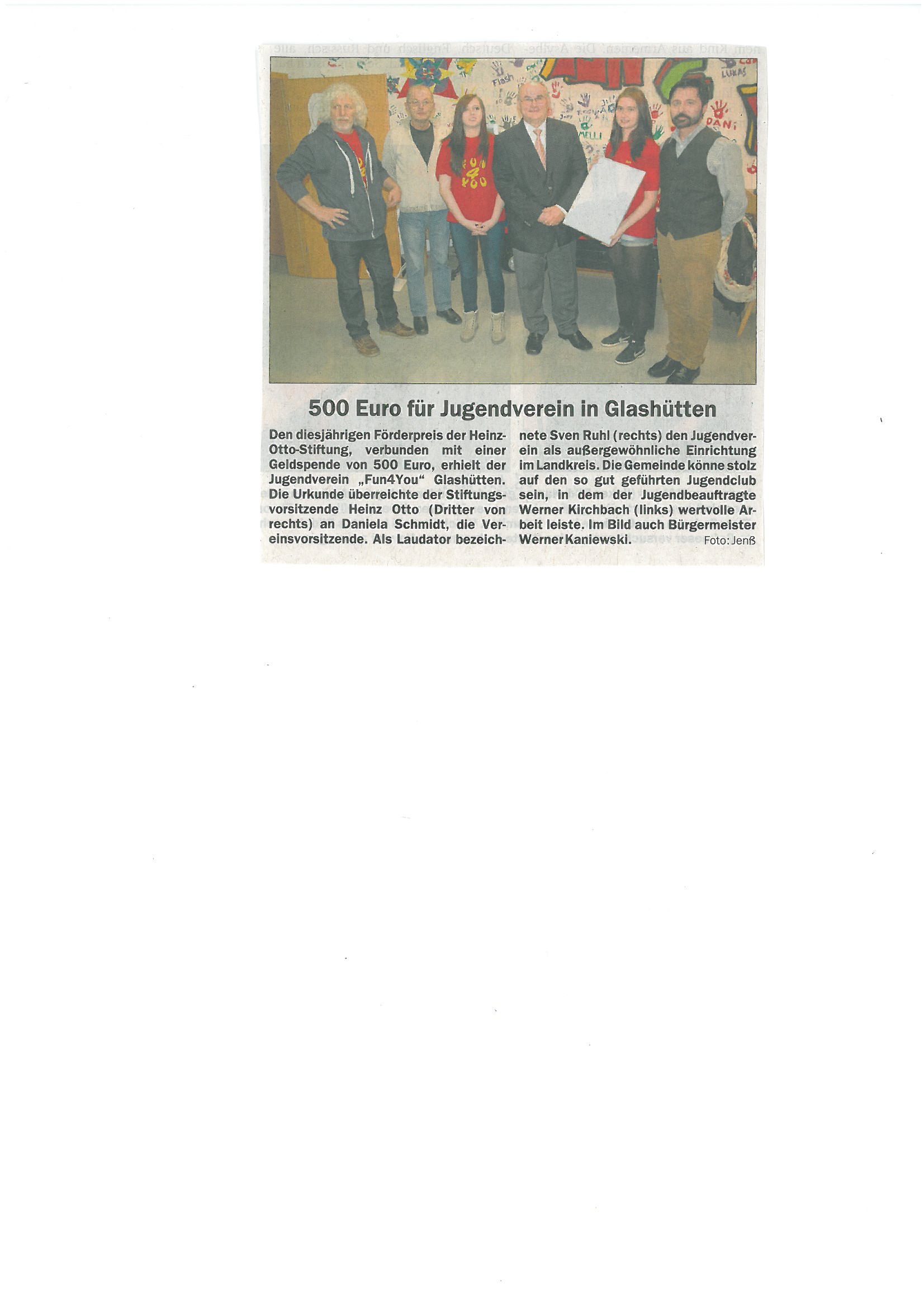 "500 Euro für die Jugend" veröffentlicht am 28. 05. 2014 im Nordbayerischen Kurier